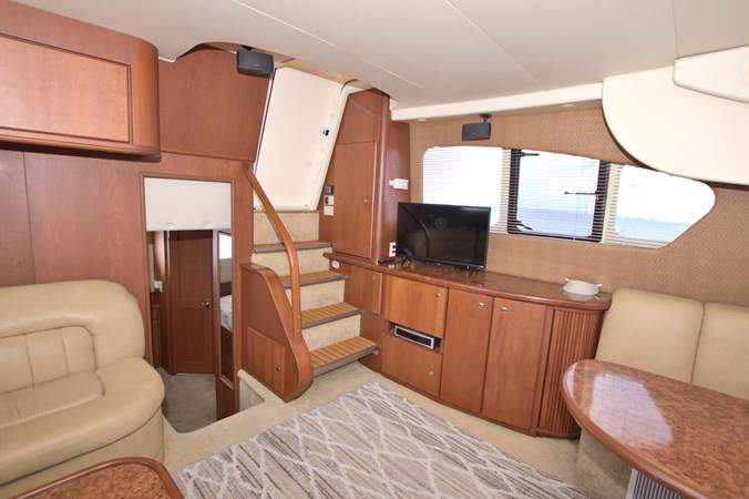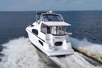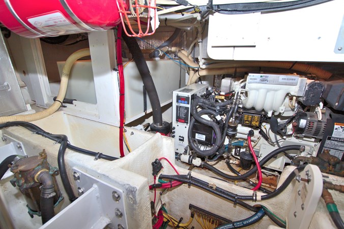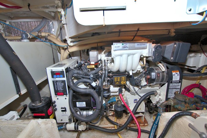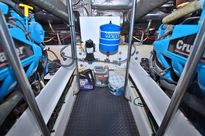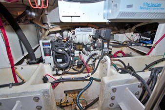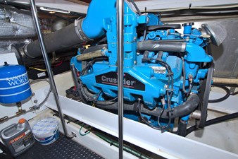 Powered by dependable 8.1 Crusader engines with under 370hrs and equipped with a 10kw Kohler generator, this motoryacht ensures a smooth, reliable performance on the water. Additional features like a bow thruster, Raymarine Axiom touchscreen chart/radar, tri-zone air conditioning, central vacuum system, and more, enhance your cruising experience. This vessel truly offers the best in marine living.