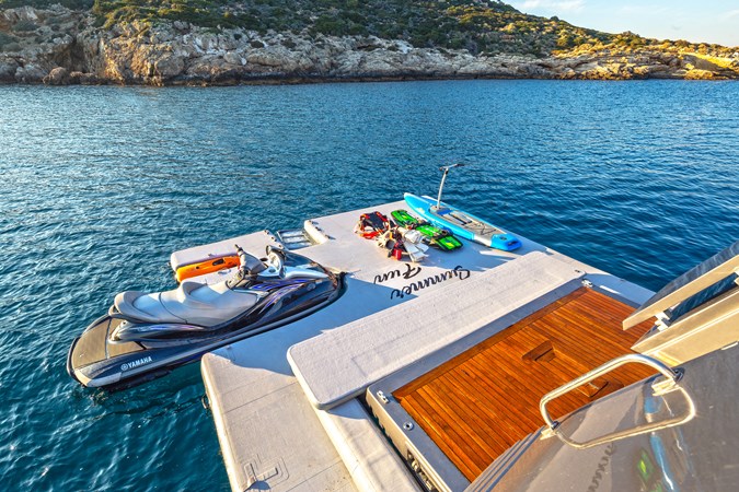 Summer Fun also carries up to 7 crew members on board, ensuring a relaxed and high-quality charter experience. With her timeless styling and impressive leisure and entertainment options, including a wide selection of water toys, she is an ideal yacht for socialising and enjoying time with family and friends.