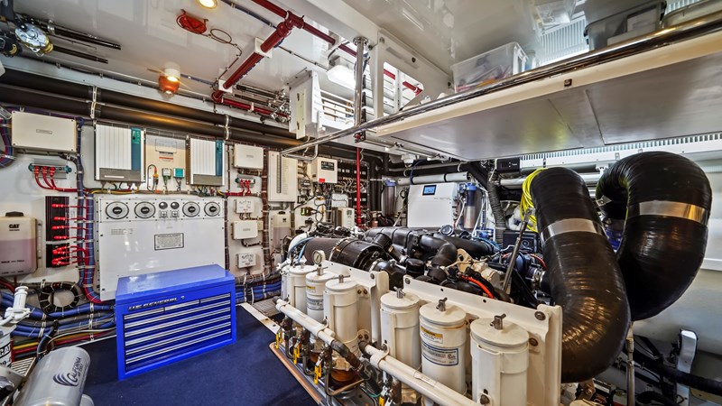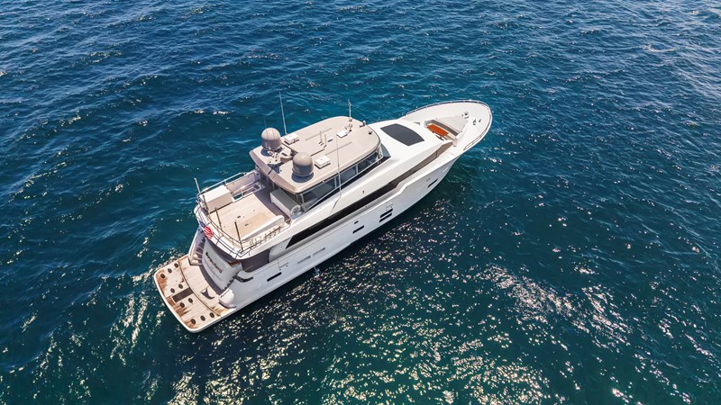 Custom-built and delivered in 2019, "Surplus Lines" represents the pinnacle of design and engineering from Hatteras, tailored by experienced owners to accommodate their large family with over $2 million in custom features. Powered by Caterpillar C32 1900 HP engines with 2200 hours, this yacht is equipped with the CAT360 joystick control system ($250k), making docking and maneuvering effortless.