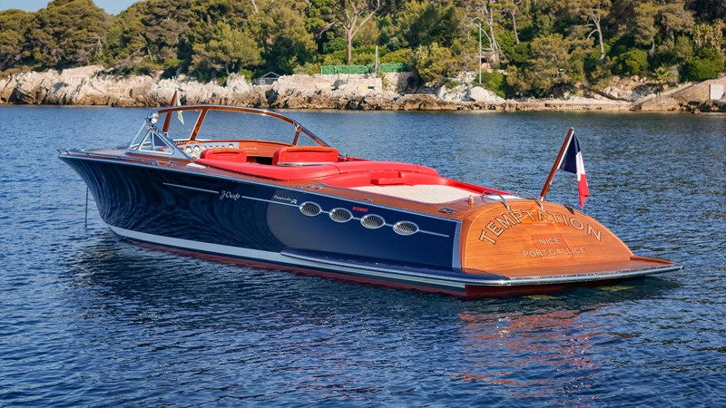 This exquisite J Craft Torpedo R, built in 2011, perfectly balances vintage style with high-end power. Handcrafted on Sweden’s Gotland island, she features a vacuum-infused GRP hull adorned with book-matched, responsibly sourced West African mahogany and twenty coats of varnish, each hull requires over 8,000 man-hours.