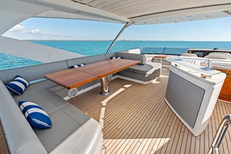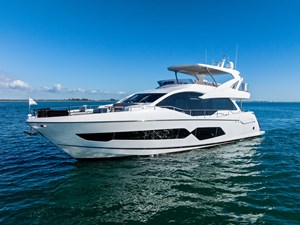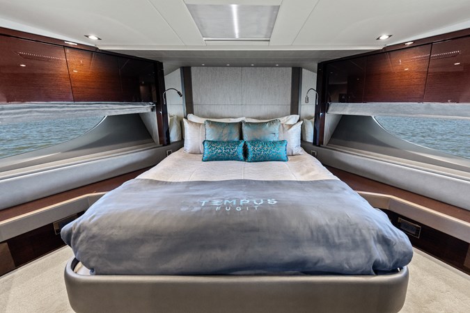 This stunning 76 Yacht gives you everything you want from a Sunseeker. From exceptional sea-keeping, the latest deep-V hull design to the class leading space throughout the beautifully appointed decks. Not only does this model cut an impressive silouette on the horizon, but an expanse of glass and sunlight also welcomes you aboard Tempus Fugit. The main deck allows you to entertain with almost a 360-degree panoramic view of your surroundings. Exterior area boast the best of sunlight and shaded areas, providing owner and guests the finest of yachting experience.