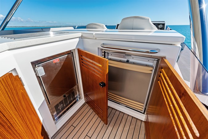 - Under-mount refrigeration drawers at bow lounge area