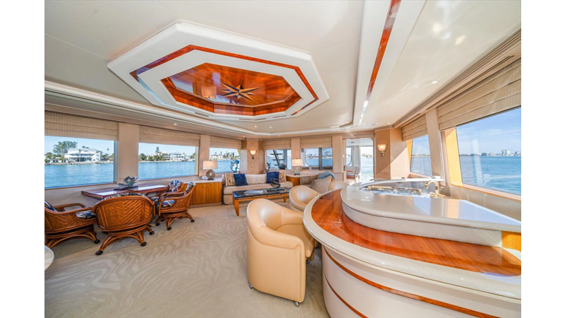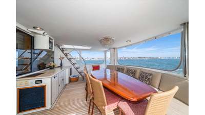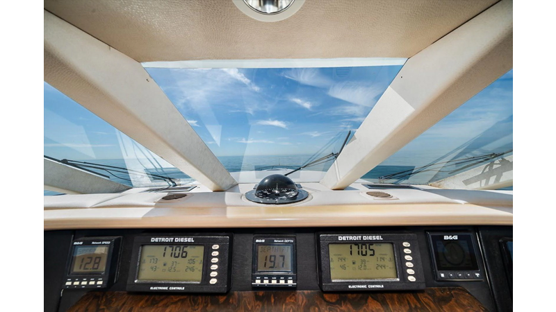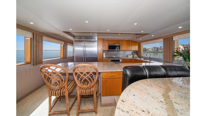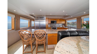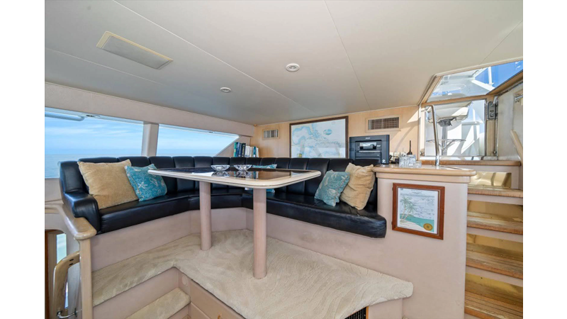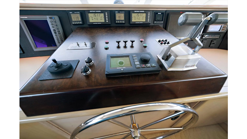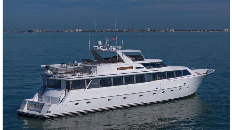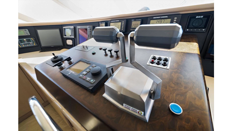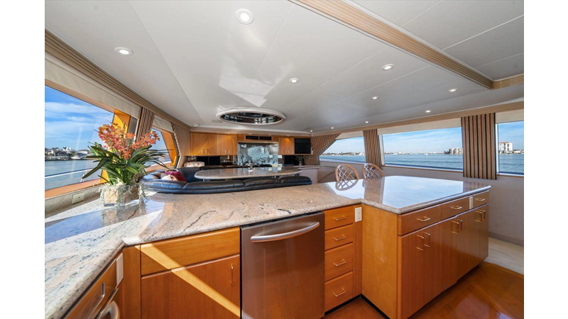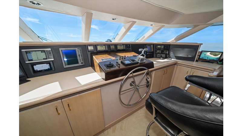 "Think B.I.G" is tastefully decorated in neutral colors throughout her spacious interior, featuring one owner and four separate ensuite guest staterooms along with crew accommodations for four. Featuring a large Country Kitchen & Gourmet Galley with a 8 to 10 person seating dinette. An incredibly large Fly Bridge/Sundeck area with a 6 person Jacuzzi, wet bar, and grill for the ultimate outdoor entertainment experience. "Think B.I.G.", is ready for her next water adventure.