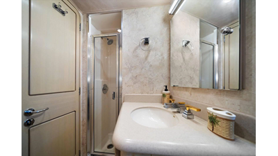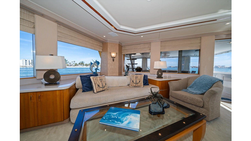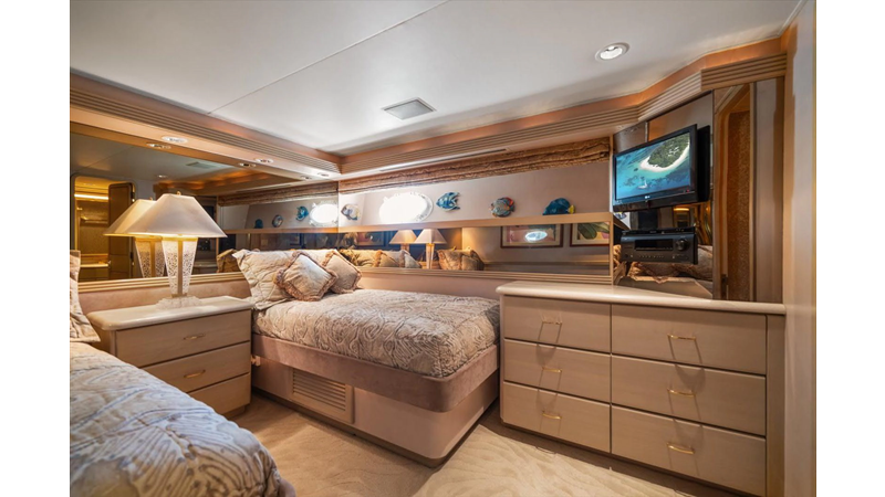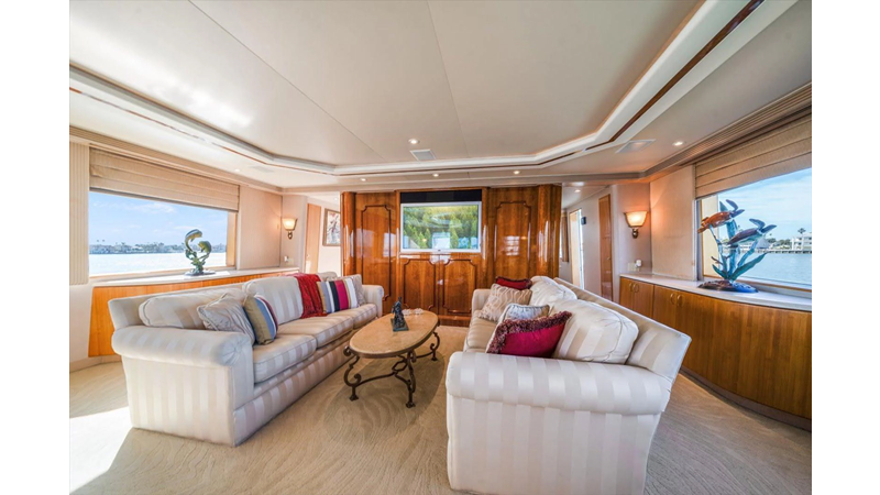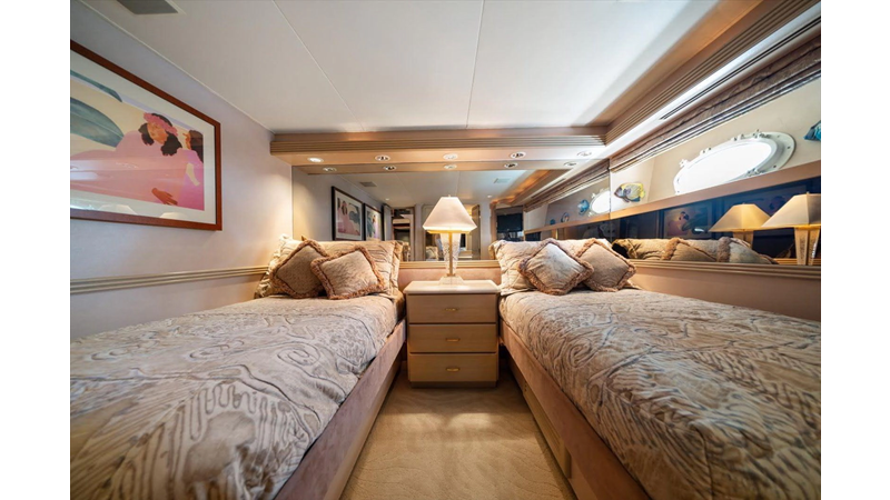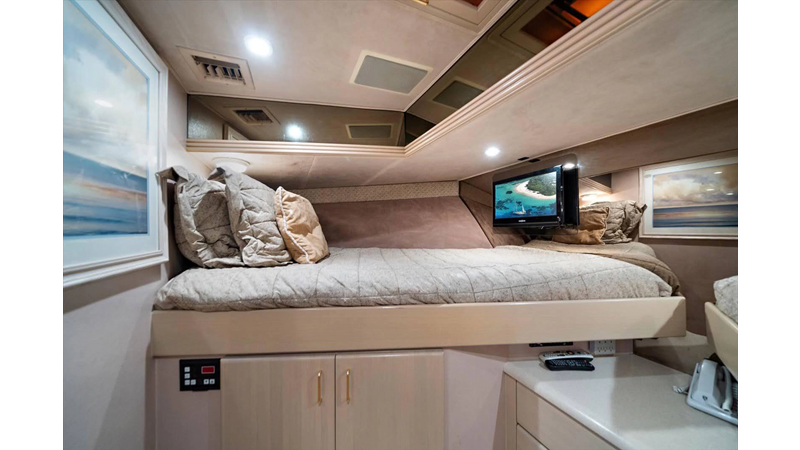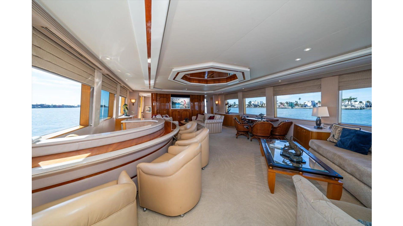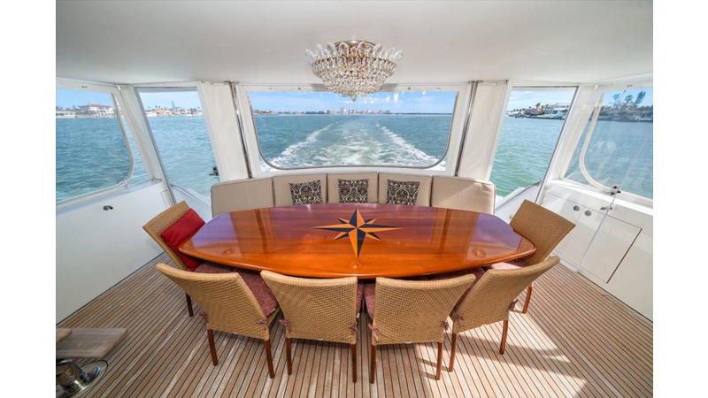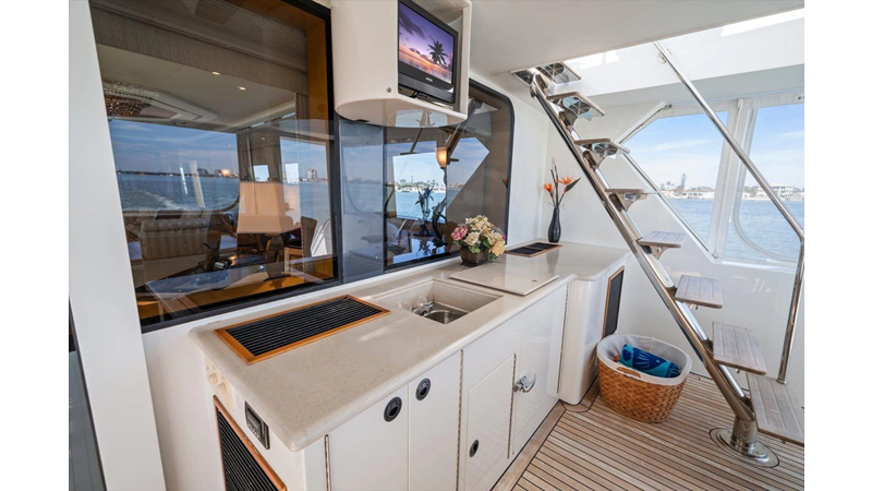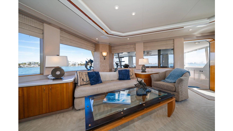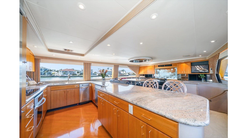 "Think B.I.G" is tastefully decorated in neutral colors throughout her spacious interior, featuring one owner and four separate ensuite guest staterooms along with crew accommodations for four. Featuring a large Country Kitchen & Gourmet Galley with a 8 to 10 person seating dinette. An incredibly large Fly Bridge/Sundeck area with a 6 person Jacuzzi, wet bar, and grill for the ultimate outdoor entertainment experience. "Think B.I.G.", is ready for her next water adventure.