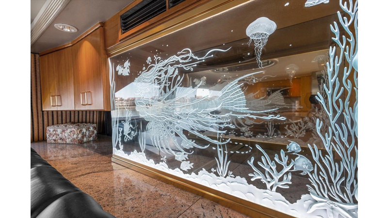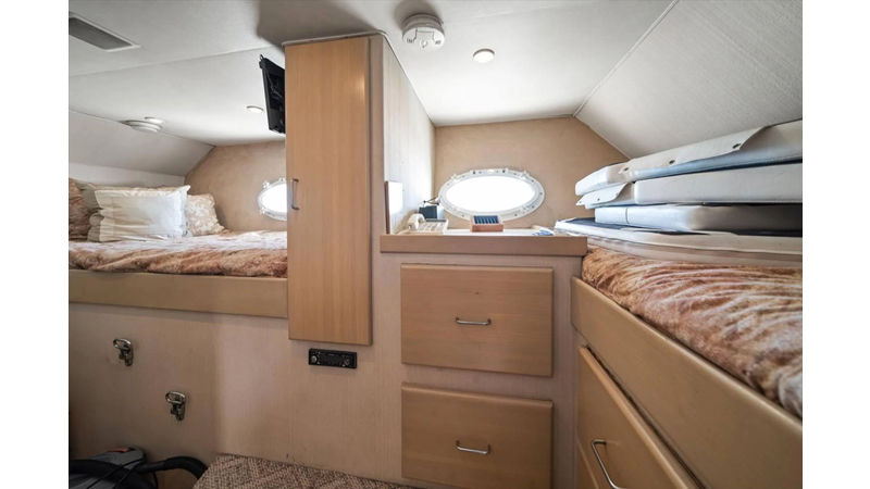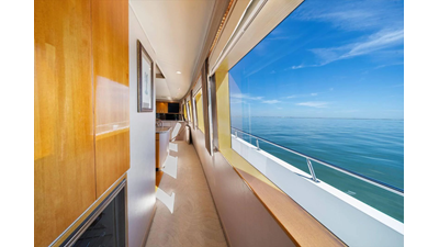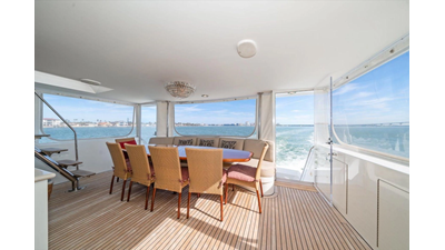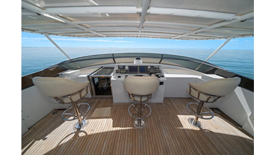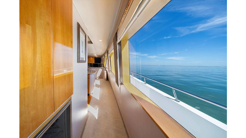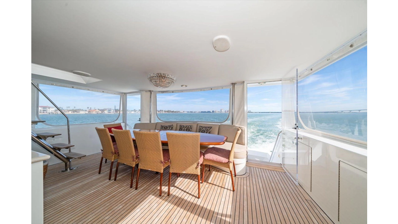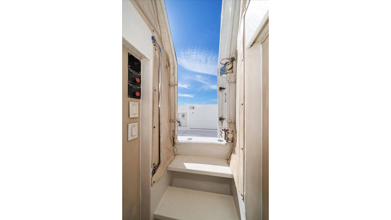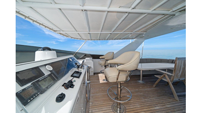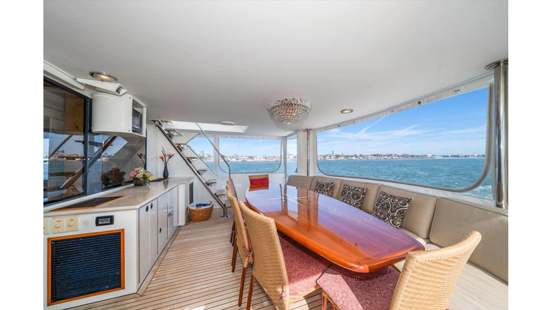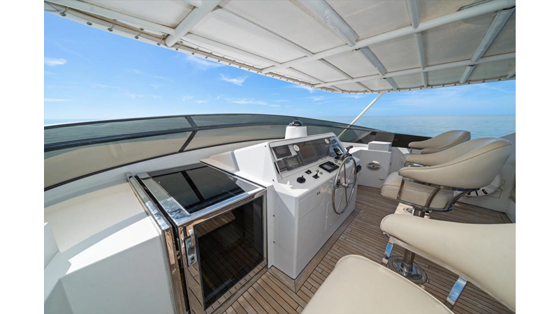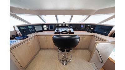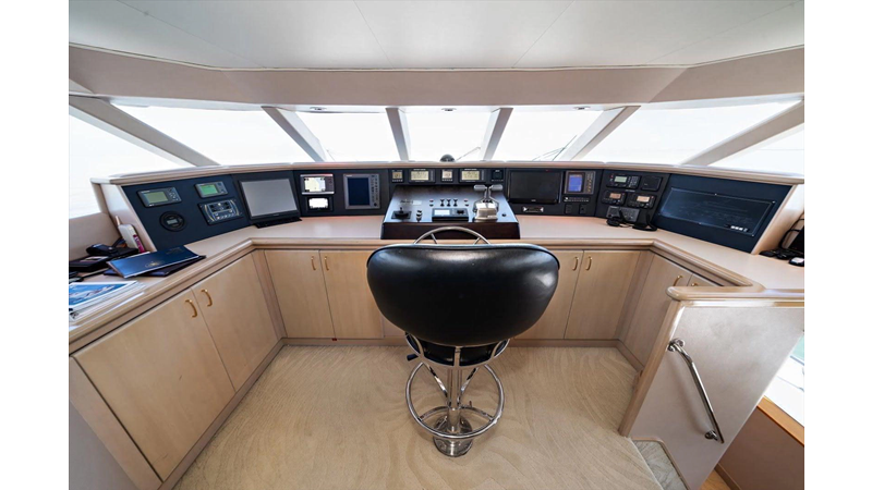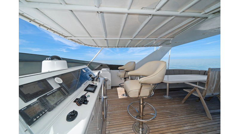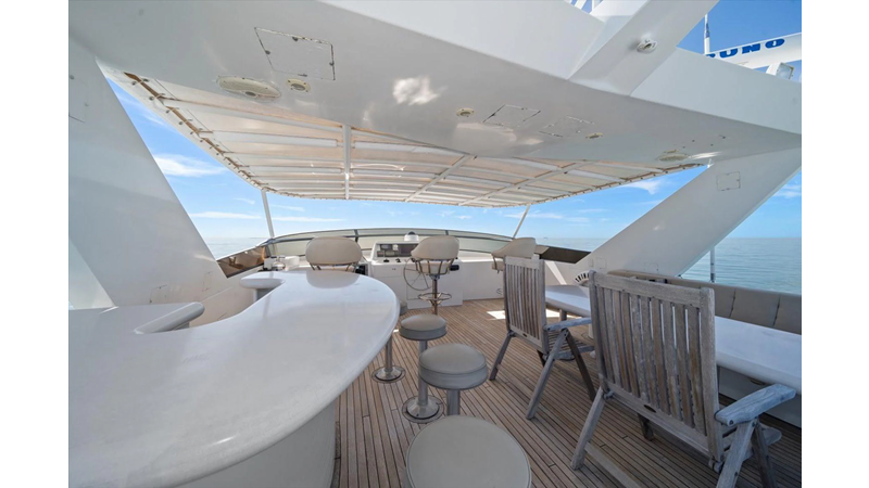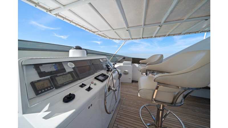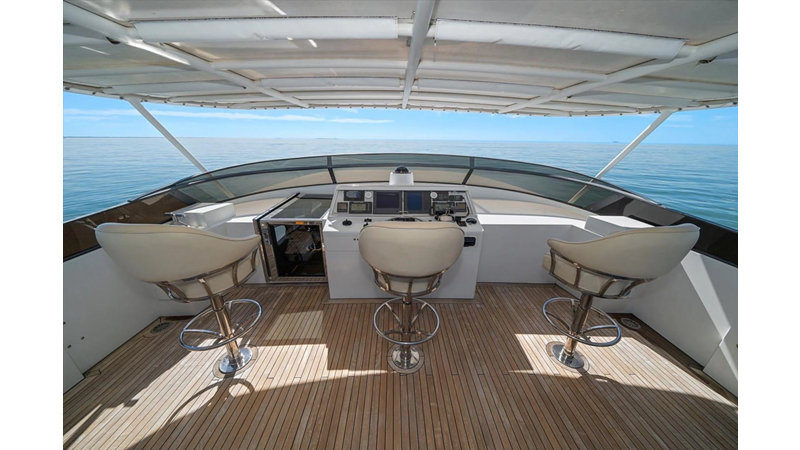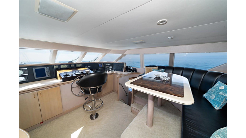 Her Large Cockpit features, all the fun water sports platform for, entertaining at water level, cruising, fishing and diving. Another great feature includes her massive Bridge Sun Deck for having fun on the bridge.