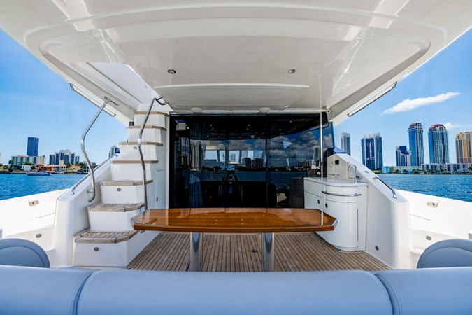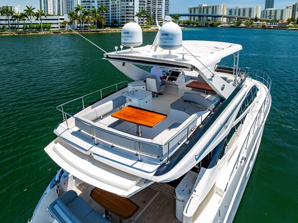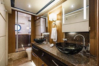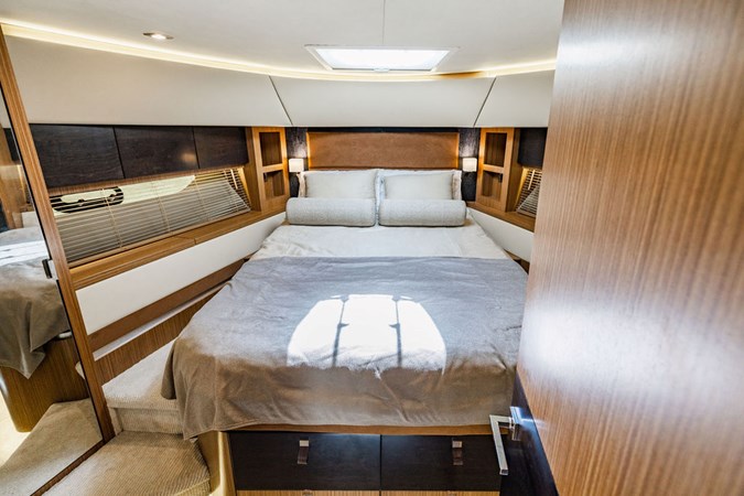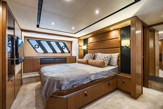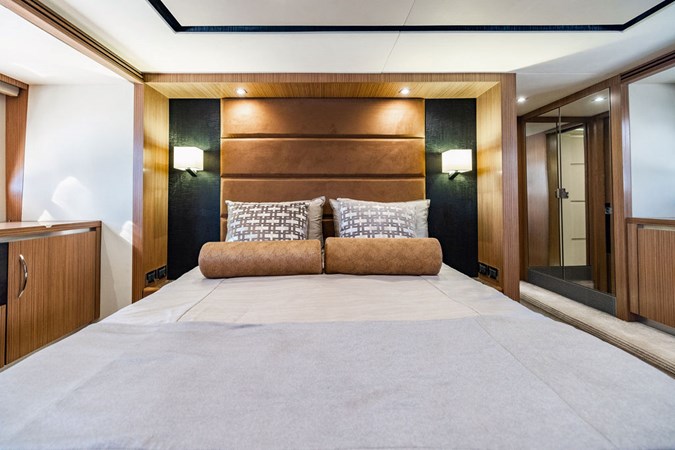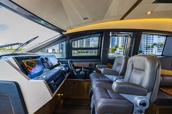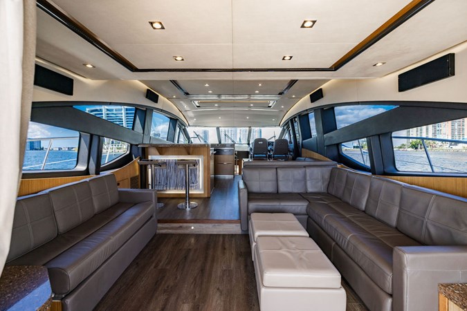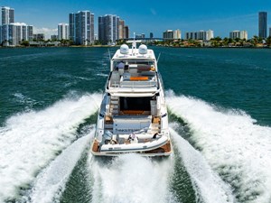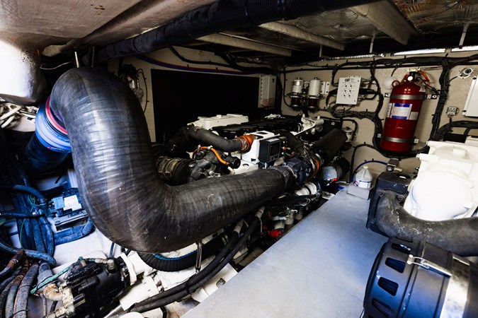 Powered by Caterpillar C-18 with a combined 2300HP and 1470 hours. This power package will easily push the boat along at a quick and comfortable cruising speed of 25 Knots and she will top out with a WOT of about 30 Knots. Equipped with (2) Two Sea Keeper Gyro Stabilizers ensuring that all guests will be comfortable no matter the conditions.