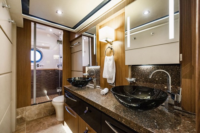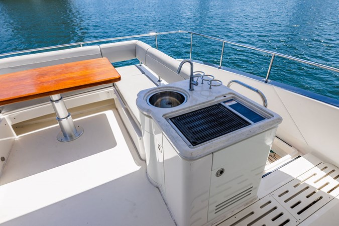 With Ultra High Quality finishes such as Teak Decking, Wood Flooring, Hard Wood Cabinetry, Granite Counter Tops, Stidd Helm Chairs, HQ Leather Sofas and LED Lighting "Thinks Its His" has some of the most luxurious accommodations of all boats in her class.