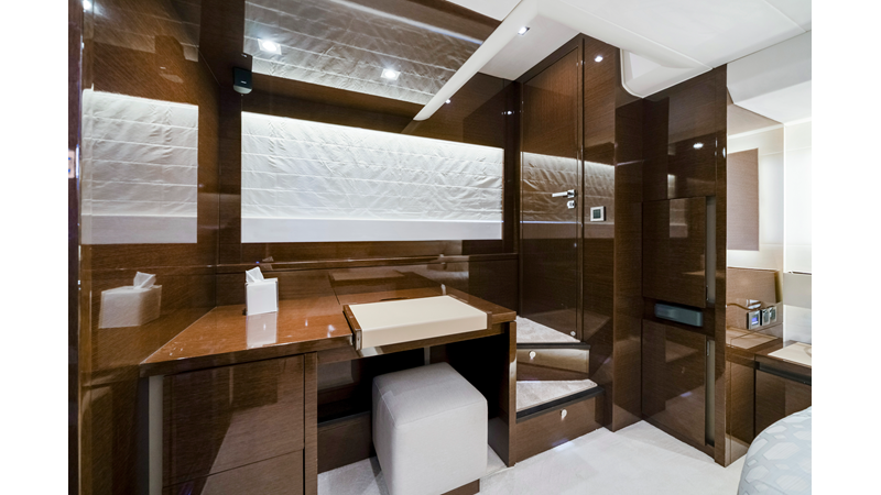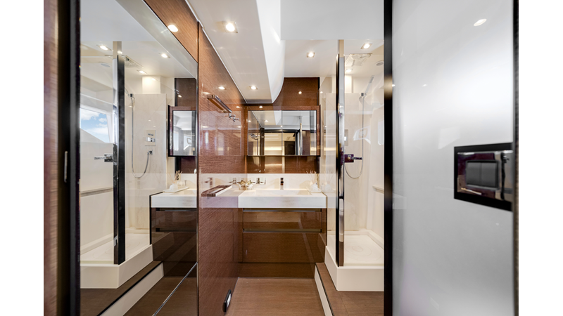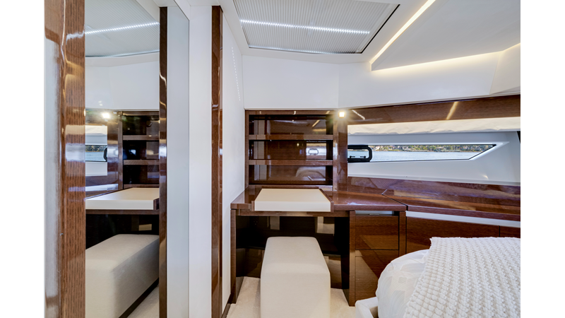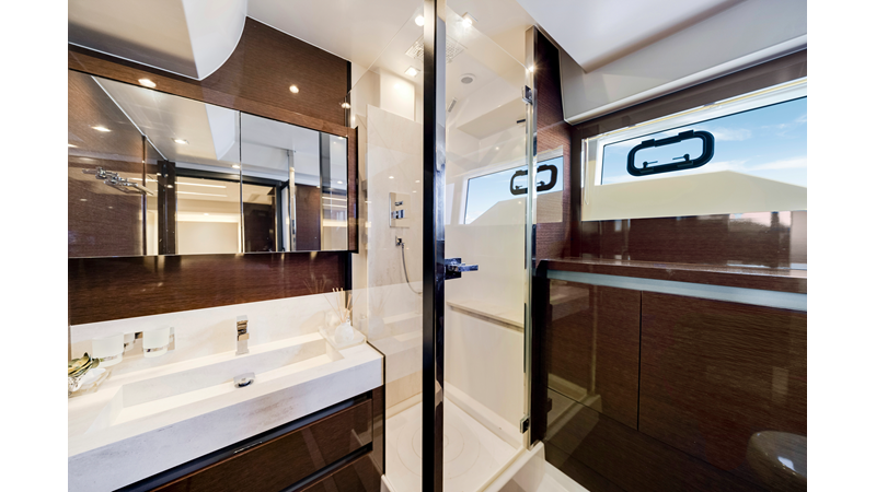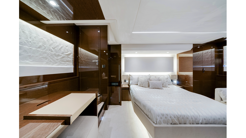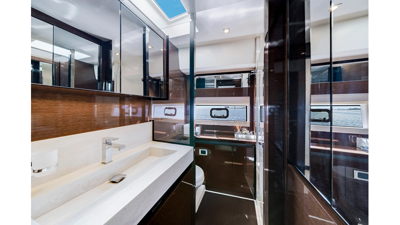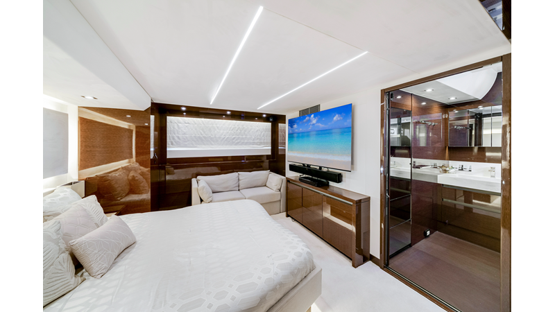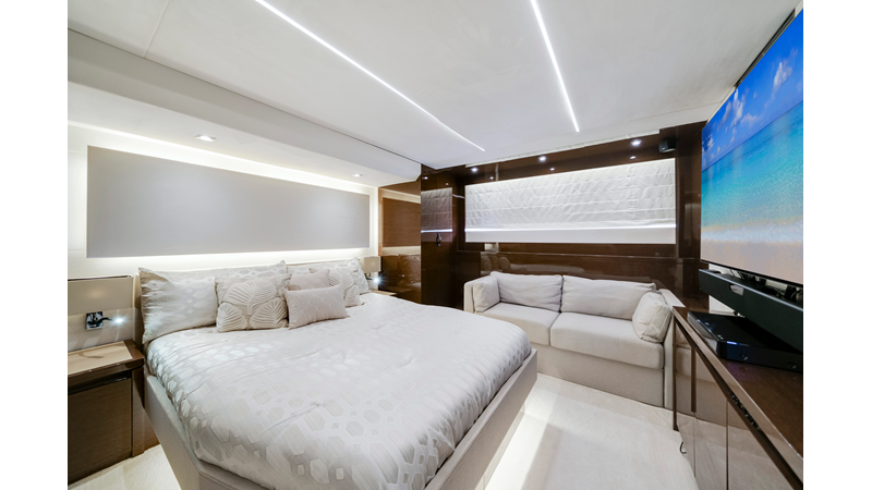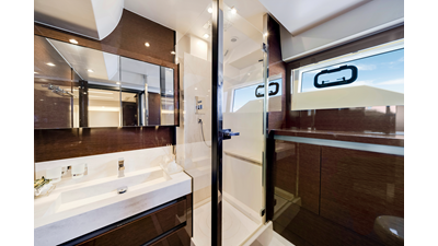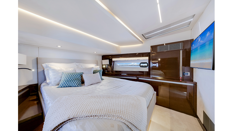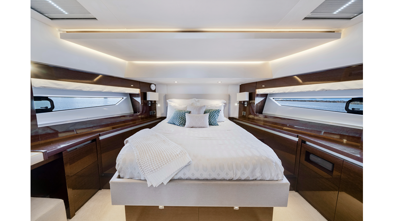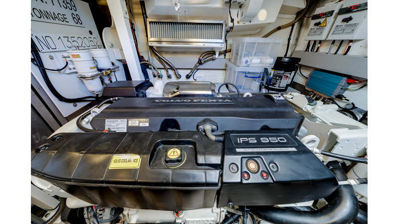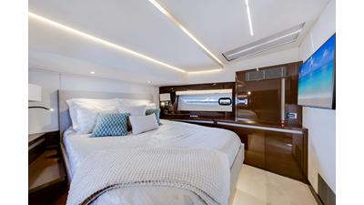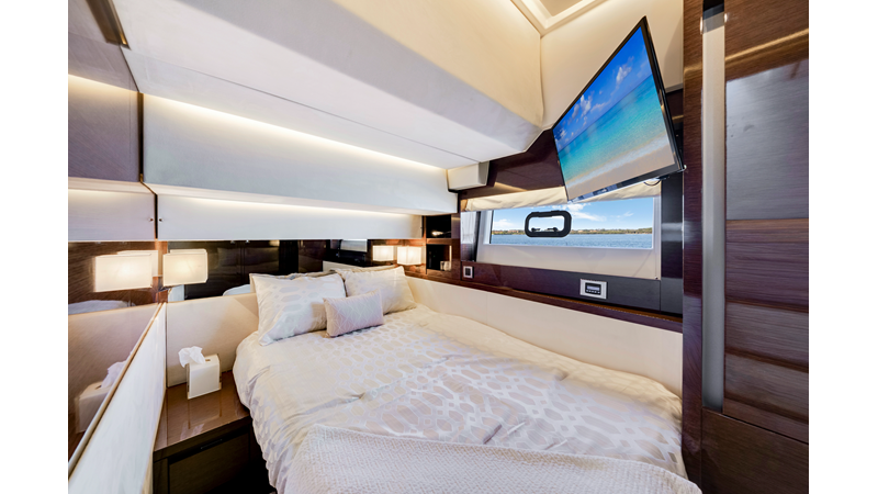 This 2019 Prestige 630 Flybridge, one of the most popular models in the Prestige lineup, beautifully combines modern luxury with dependable performance. Powered by twin Volvo Penta IPS 950 engines, she delivers smooth, efficient cruising and easy maneuverability with joystick control. The open-concept salon and aft galley create seamless indoor-outdoor living, complemented by expansive windows that flood the interior with natural light. Three well-appointed staterooms, including a full-beam master suite with private ensuite, provide exceptional comfort for extended trips or onboard living.