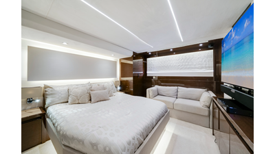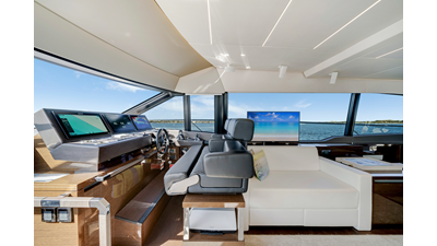 The expansive flybridge features a dining area, wet bar, and generous lounge space—perfect for entertaining or relaxing with panoramic views. Additional highlights include Seakeeper stabilization, a hydraulic swim platform, and high-end finishes throughout. Recently upgraded with Starlink high-speed internet and a completed 1,000-hour service, this Prestige 630 is in excellent condition and ready for her next owner to enjoy.