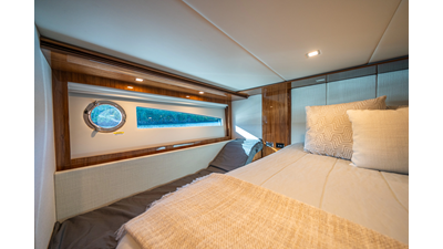 Below deck, WATERDOG offers a three-stateroom, two-head layout, highlighted by a full-beam master suite with a private ensuite. Every detail reflects Riviera’s commitment to craftsmanship and comfort, from the high-gloss timber finishes to the thoughtful integration of light, texture, and space.