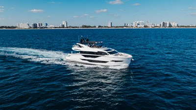 WHITE STAR, the award-winning 2023 Sunseeker 90 Ocean, delivers a yachting experience that feels more like a private penthouse on the water. Her broad 23’ 6” beam and upright stem bow provide 20% more interior volume and nearly 30% more deck space compared to yachts in her class.