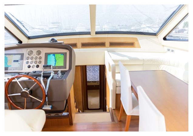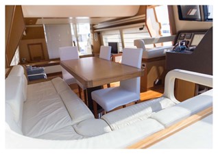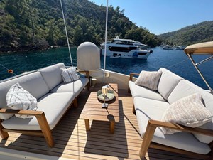 Flybridge aft seating group with teak decking