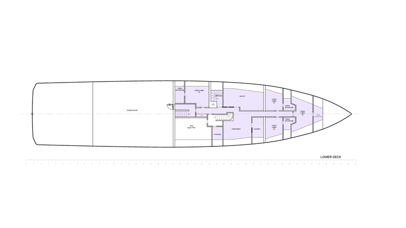 Fuel capacity of 50,000 liters ensures an exceptional range of 4,000 nautical miles at 10 knots, enabling transoceanic crossings and long-distance cruising with no compromises.