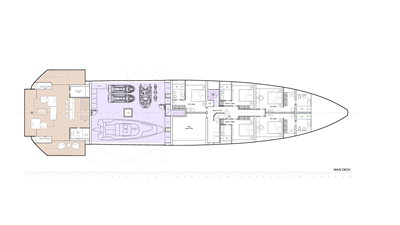 An entire private deck for the owner, five double guest cabins, and a spa designed to fulfill every desire.