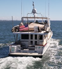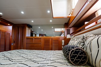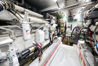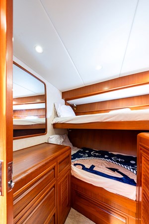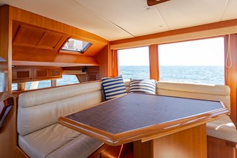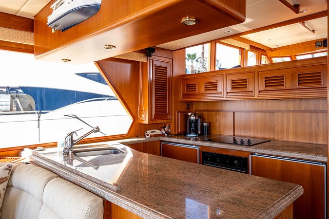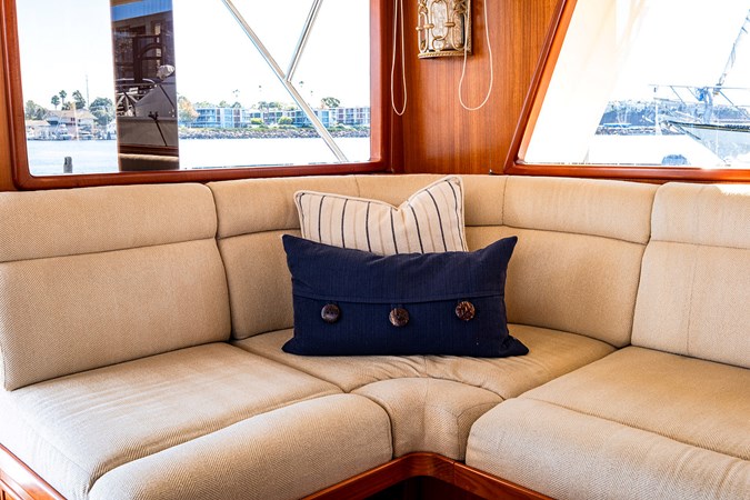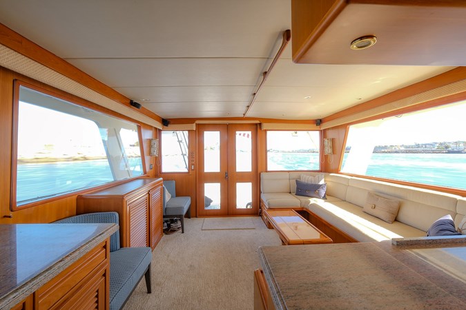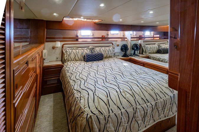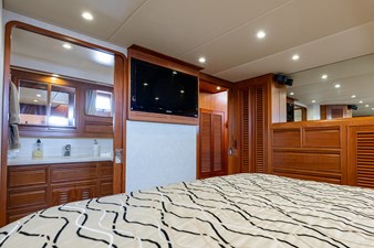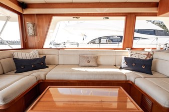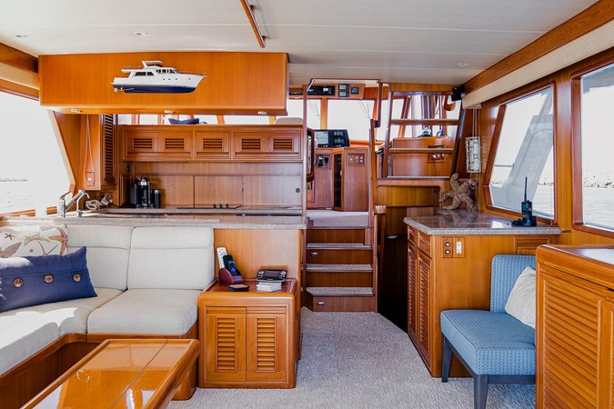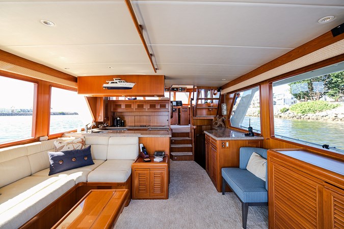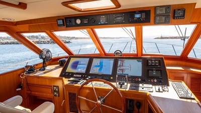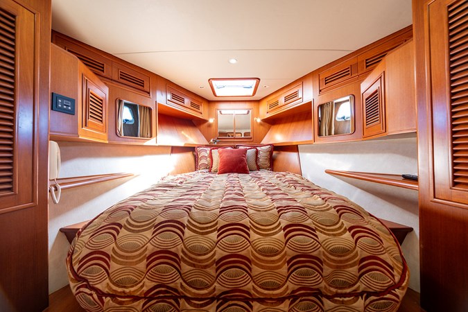 Her wide beam and deep hull form provide exceptional stability and a quiet, comfortable ride, while the pilothouse layout offers outstanding visibility and protection in all weather. The spacious salon flows seamlessly into the well-equipped galley, creating an inviting space for entertaining or extended cruising. Below, the three-stateroom layout provides generous accommodations, including a luxurious owner’s suite and two beautifully appointed guest cabins.