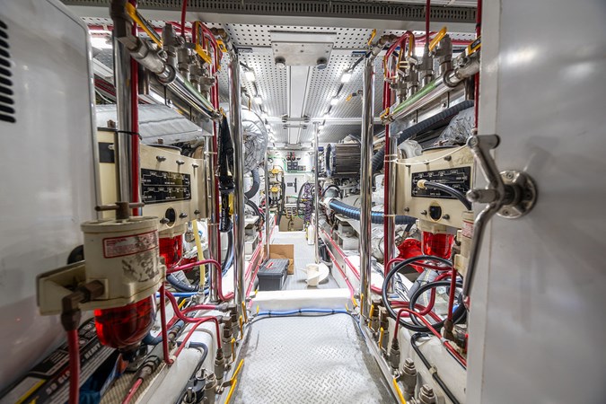 Twin Caterpillar 3406, 800 hp each — fully serviced and ready to cruise, including new aftercoolers (2024).